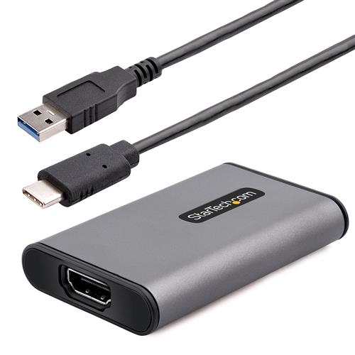 Questo dispositivo di acquisizione video USB a HDMI consente la registrazione A/V HDMI, fino a 4K a 30 Hz, su un computer che supporta USB-C o USB-A.